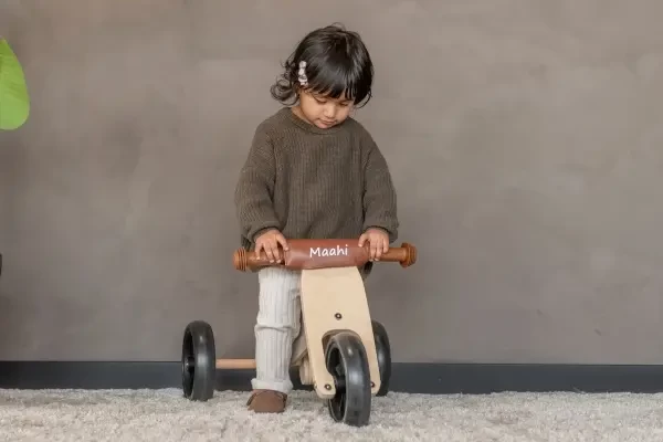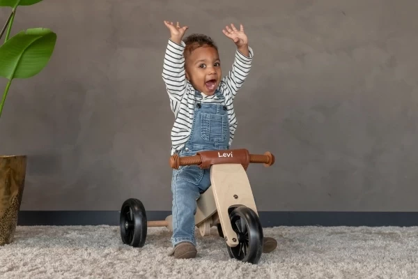 Een multifunctionele loopfiets die meegroeit met jouw kind! De Smart bike heeft een omkeerbaar frame en een verstelbaar zadel (23-30 cm). Hierdoor is het mogelijk om de loopfiets in vier verschillende standen te gebruiken. De driewieler zorgt ervoor dat jouw kind vol zelfvertrouwen van A naar B kan. Toe aan de volgende stap? Dan transformeer je de driewieler in een tweewieler. De massieve wielen zijn lekvrij en geluidsarm waarop binnen en buiten kan worden gereden. Personaliseer de Smart bike sand met een kinbeschermer met naam!