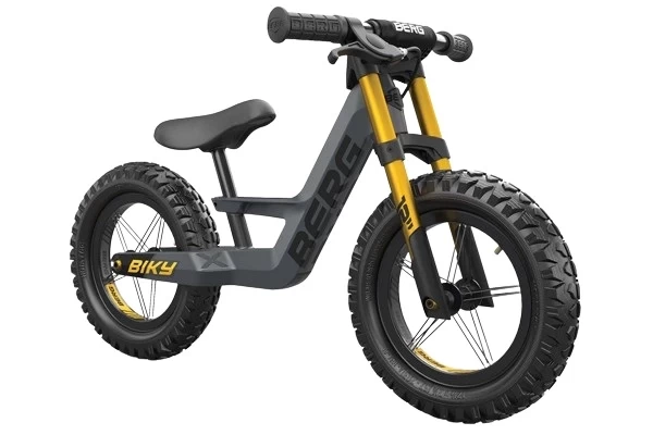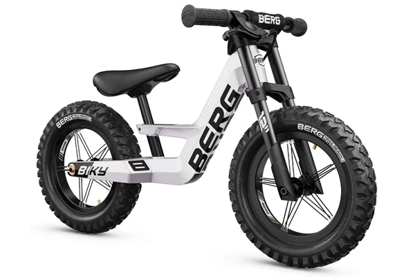 Een stoere loopfiets met handrem. De Biky Cross Blue met handrem is zeer licht dankzij het magnesium frame. In het frame vind je geïntegreerde voetsteunen met antislip tape. Het zadel is traploos verstelbaar. De loopfiets heeft een gave dubbele voorvork en 12" cross luchtbanden. De fiets is geschikt voor kids vanaf 2,5 tot 5 jaar. Of een lichaamslengte tussen de 85 en 120 cm. De maximale draagkracht is 30 kg. Inclusief BERG kinbeschermer