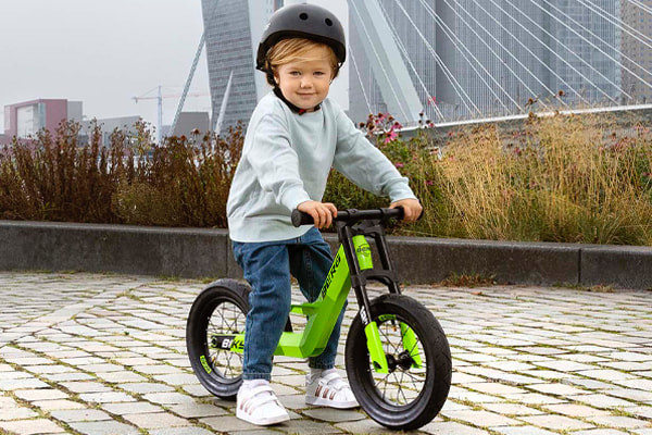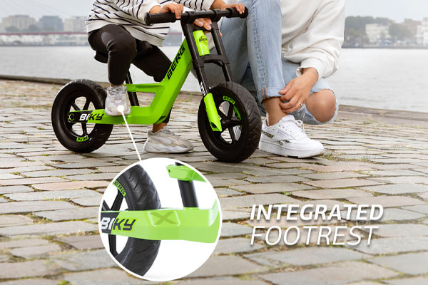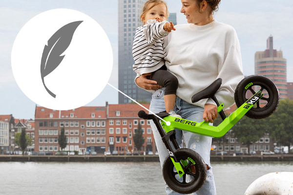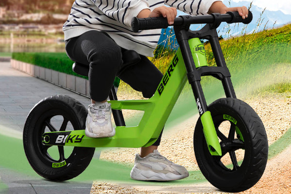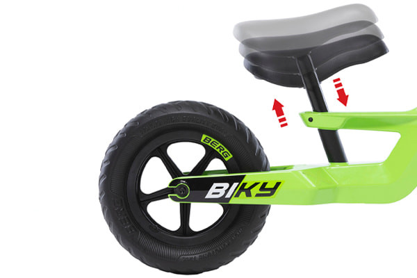 De Biky Mini Green is een opvallende loopfiets van BERG. Het is een strak ontwerp met een stoere dubbele voorvork. Het frame is van magnesium gemaakt en daardoor zeer licht. Er zitten ingebouwde voetsteunen in met een antislip laagje. De EVA banden zijn 10" en het zadel is verstelbaar. Geschikt voor kinderen van 2 tot 5 jaar, of met een lichaamslengte van 85 tot 115 cm. Kan maximaal 30 kg dragen.