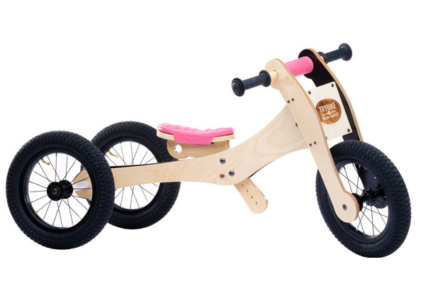 Houten loopfiets voor kinderen van 1 of 2 jaar. Cadeautip: graveren of kinbeschermer bedrukt met eigen naam.