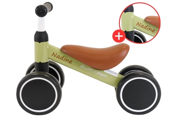Maak de loopfiets helemaal eigen door een naamsticker toe te voegen of te kiezen voor een kinbeschermer met naam. Verder kun je de loopfiets uitbreiden met leuke accessoires zoals stuurtasjes, mandjes of een vrolijke bel. Zo wordt de loopfiets nog persoonlijker en wordt elk ritje een feestje.