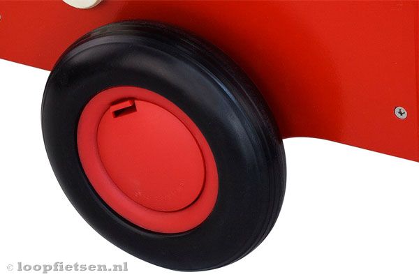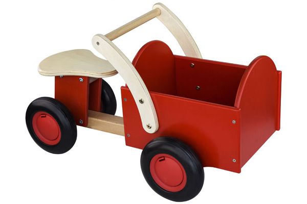 Mooie houten bakfiets in de kleur rood met blank hout. Deze loopfiets is voorzien van geluidsarme kunststof wielen en daardoor zowel geschikt voor binnen en buiten. Dankzij de zadelhoogte van 23,5 cm kunnen kinderen vanaf ongeveer 1 jaar al met de houten bakfiets rijden. Dit houten bakfietsje is super stevig, mooi afgewerkt en eenvoudig te monteren.