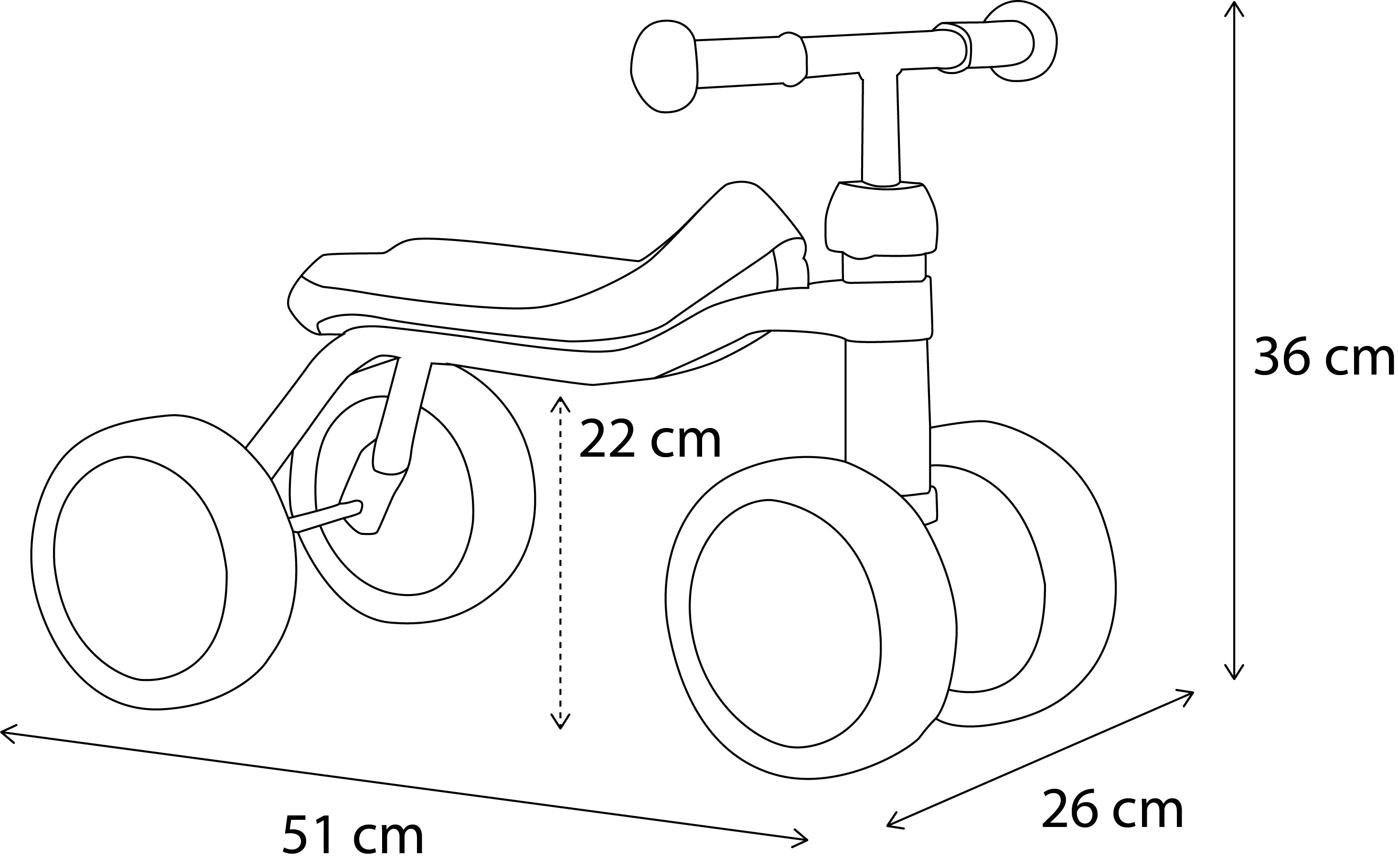 Een retro blauwe loopfiets voor kinderen vanaf 1 jaar of met een lichaamslengte van 75 cm. Het comfortabele loopfietszadel is 22 cm hoog. Het stuur, met veiligheidshandvaten, heeft een hoogte van 36 cm. Jouw kind kan hierop de ideale houding aannemen! De vier geluidsarme wielen zorgen voor stabiliteit. Er kan zowel binnen- als buitenshuis op gereden worden.