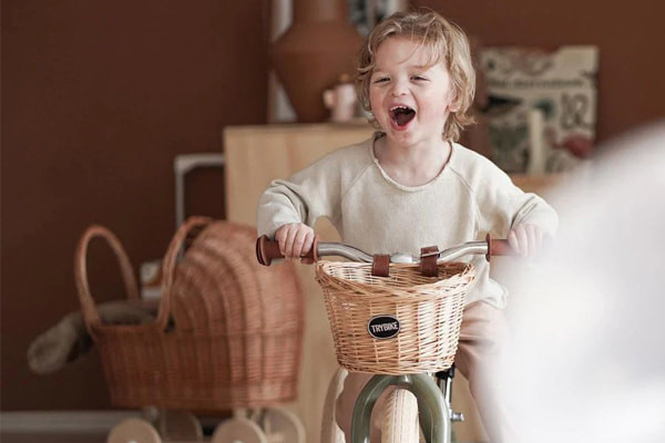 Hoe maak je van de Trybike een nóg leukere loopfiets? Door het bijpassende mandje mee te bestellen! Dit schattige rieten stuurmandje is eenvoudig aan het stuur te bevestigen met twee leren riempjes. Het mandje is geschikt voor de Steel modellen (niet geschikt voor de 4in1 wood). Let op: kan niet tegelijkertijd met de optionele kinbeschermer bevestigd worden.