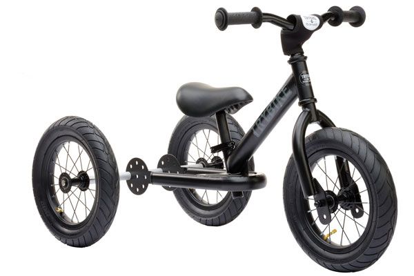 Maak kennis met de Steel 2-in-1 black, black edition van Trybike! Deze stoere loopfiets is een driewieler en tweewieler in één! De driewieler is geschikt voor de allerkleinsten vanaf 1,5 jaar. De twee wielen aan de achterkant zorgen voor extra balans. Als het kindje wat groter wordt kan de Trybike worden omgebouwd tot tweewieler. Tevens beschikt hij over een in hoogte verstelbaar zadel (30 - 45 cm), veiligheidshandvaten en stevige luchtbanden.
