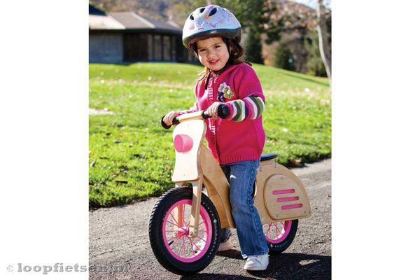 Houten loopfiets Prince Lionheart scooter. De roze loopfiets scooter is zeer fraai afgewerkt en voorzien van een in hoogte verstelbaar zadel (39-47cm). Met 12 inch luchtbanden met spaken en veiligheidshandvaten. Prince Lionheart scooter is geschikt vanaf 2 jaar.